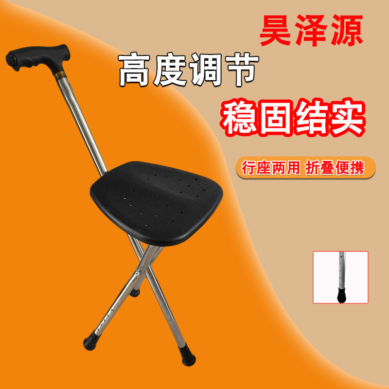 手杖折叠椅老人多动能三角形可坐手杖凳折叠便携两用拐杖手杖椅