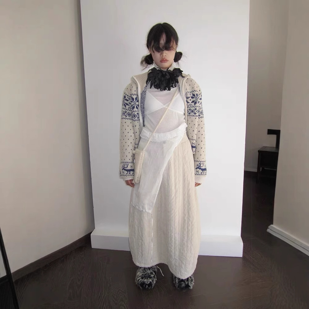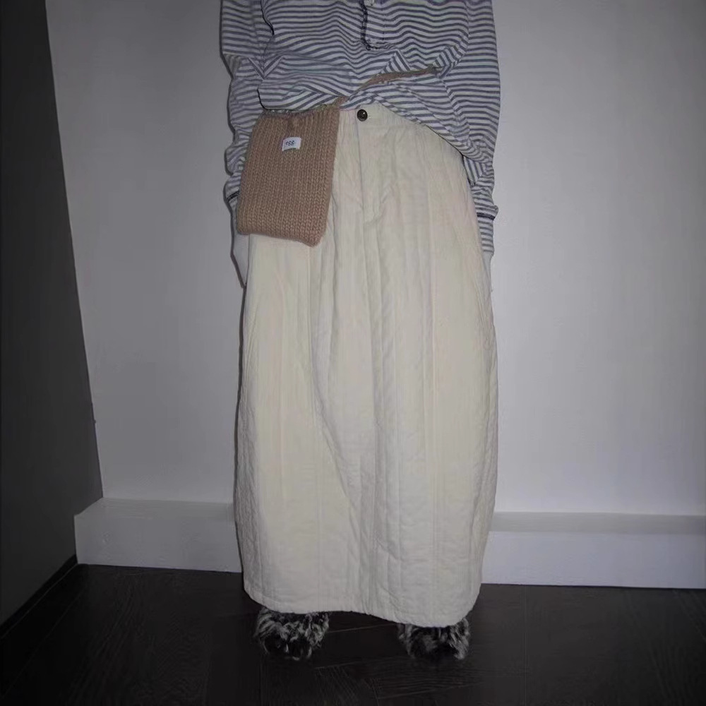 3moths白色夹棉半身裙女秋冬季2024年新款高腰加厚a字长裙棉裙子