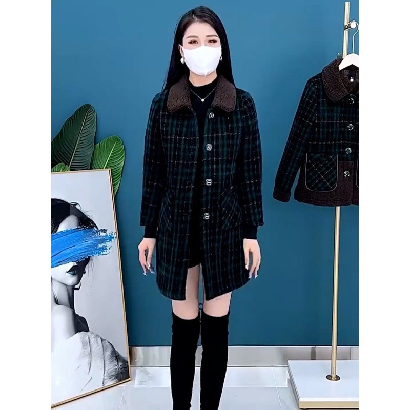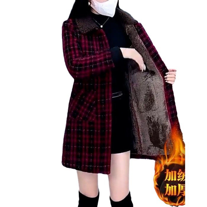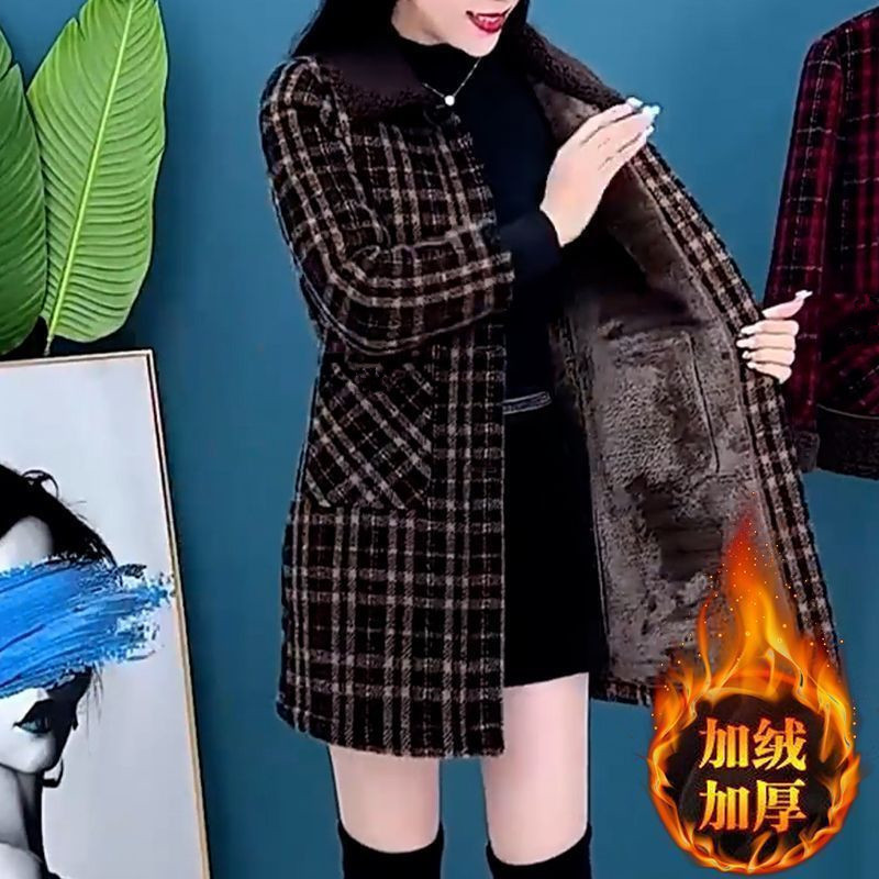 秋冬洋气时尚新款加绒加厚中长款外套女装气质显瘦大气妈妈装