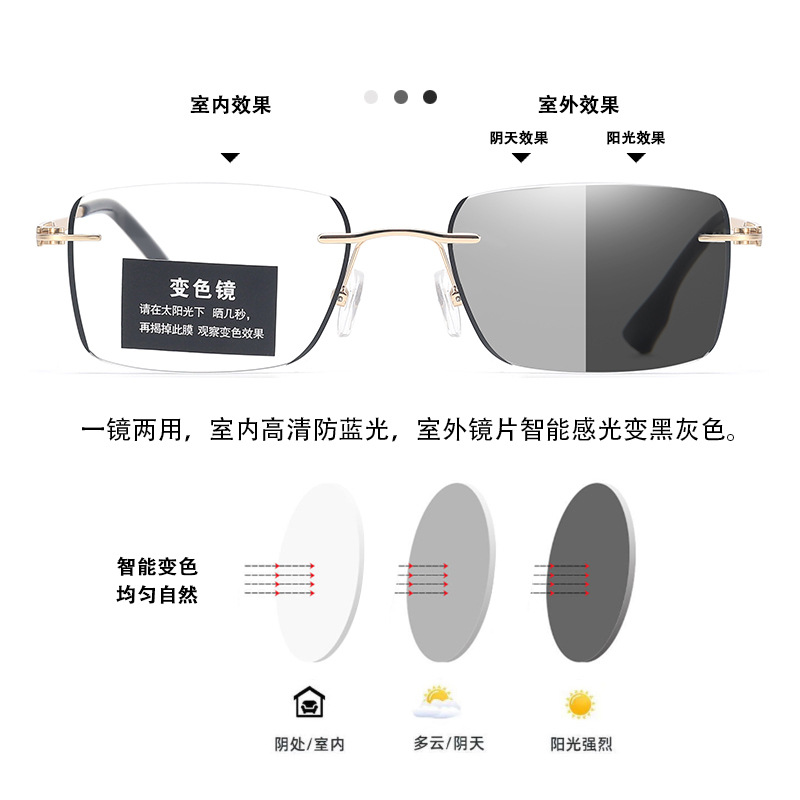 | 镜框颜色 | 枪框 | 度数 | +100度(变色多焦点) |