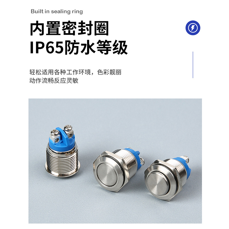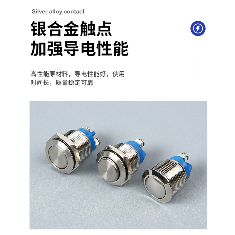 金属按钮开关无灯小型防水自锁自复位式开关高头平头金属按钮开关