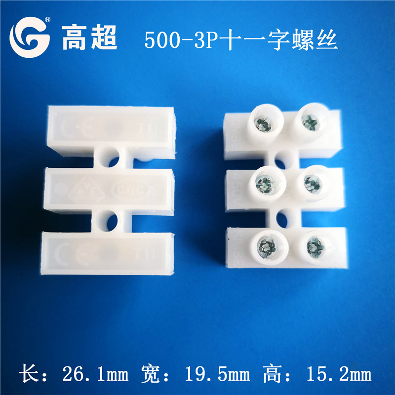 三位成膜接线柱端子台24A间距10mm端子阻燃环保三位端子500型号