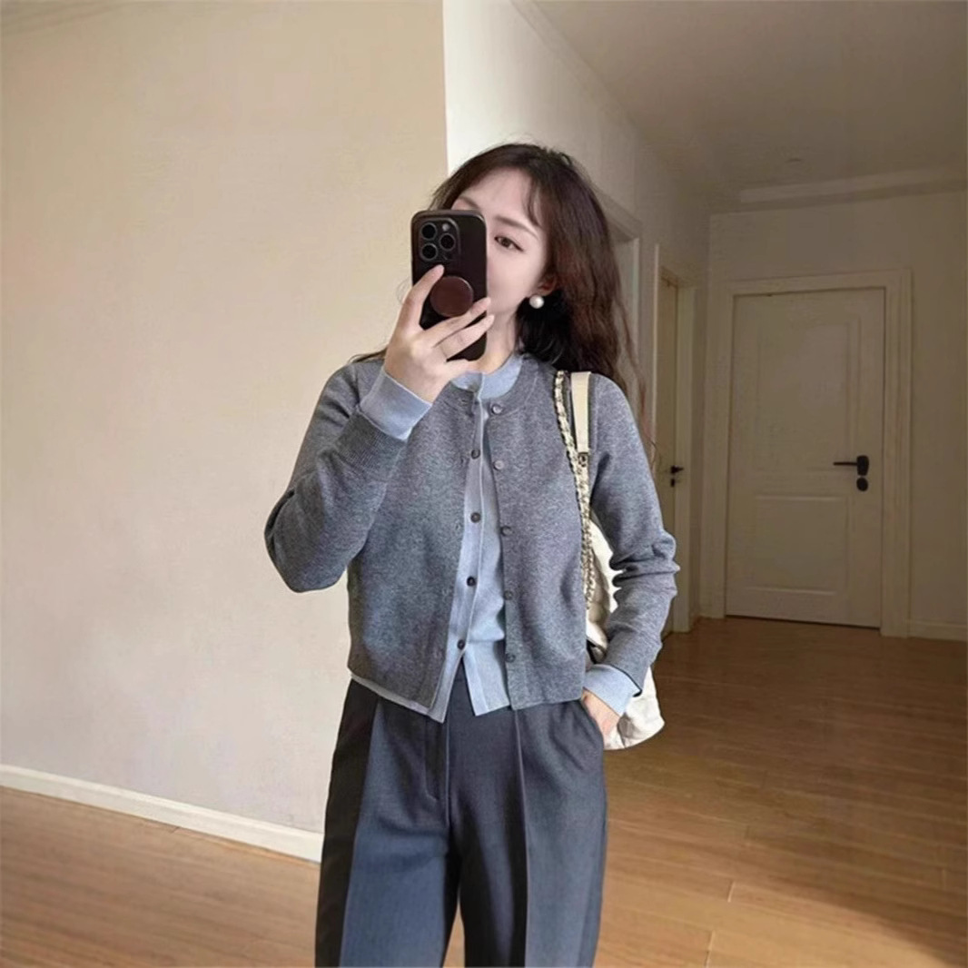 毛衣假两件针织开衫女春季款内搭短款打底衫修身显瘦毛衣外套长袖