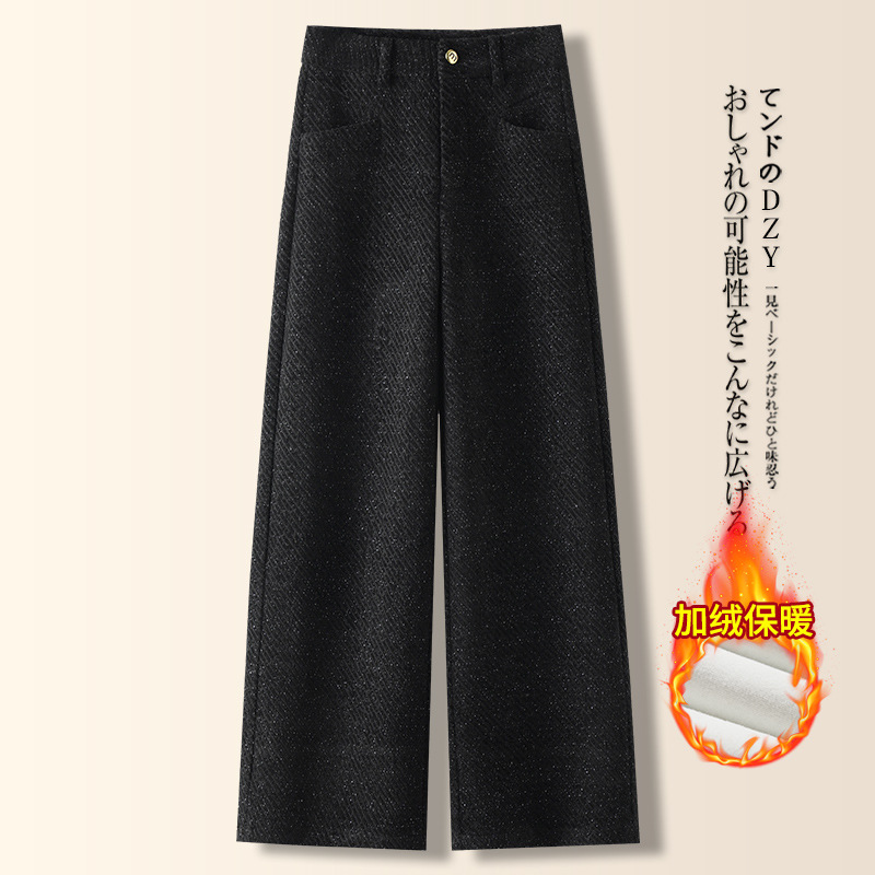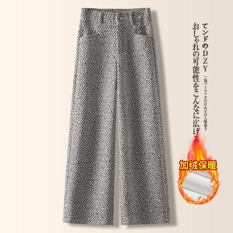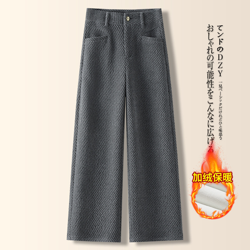 雪尼尔条纹阔腿休闲裤女秋冬新款加绒宽松百搭加厚直筒裤