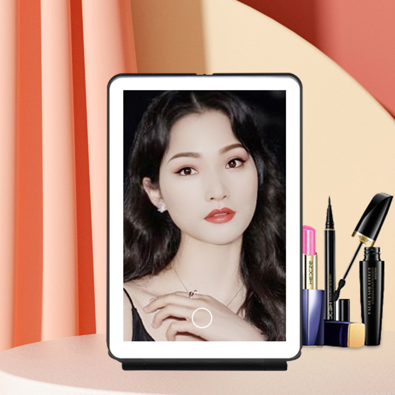 桌面化妆镜触屏发光镜美颜补光灯方便携带美妆镜充电款镜子打光镜