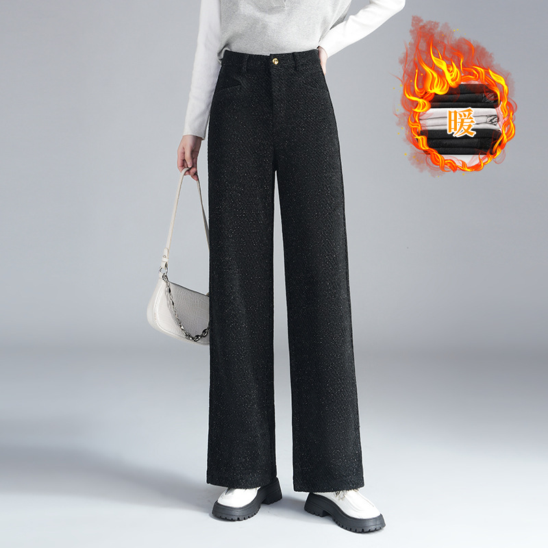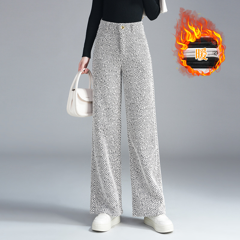 24年秋冬宽版条纹阔腿裤日韩风高腰修身休闲百搭加绒加厚直筒裤