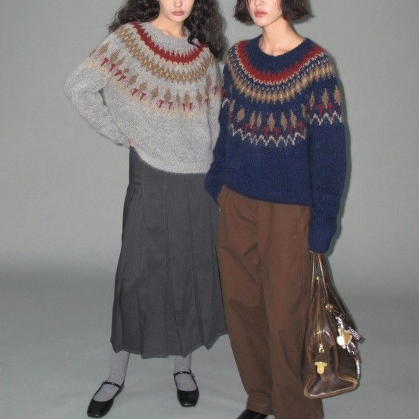 shyshy“漏光胶片”费尔岛羊毛马海毛重工设计感原创经典套头上衣