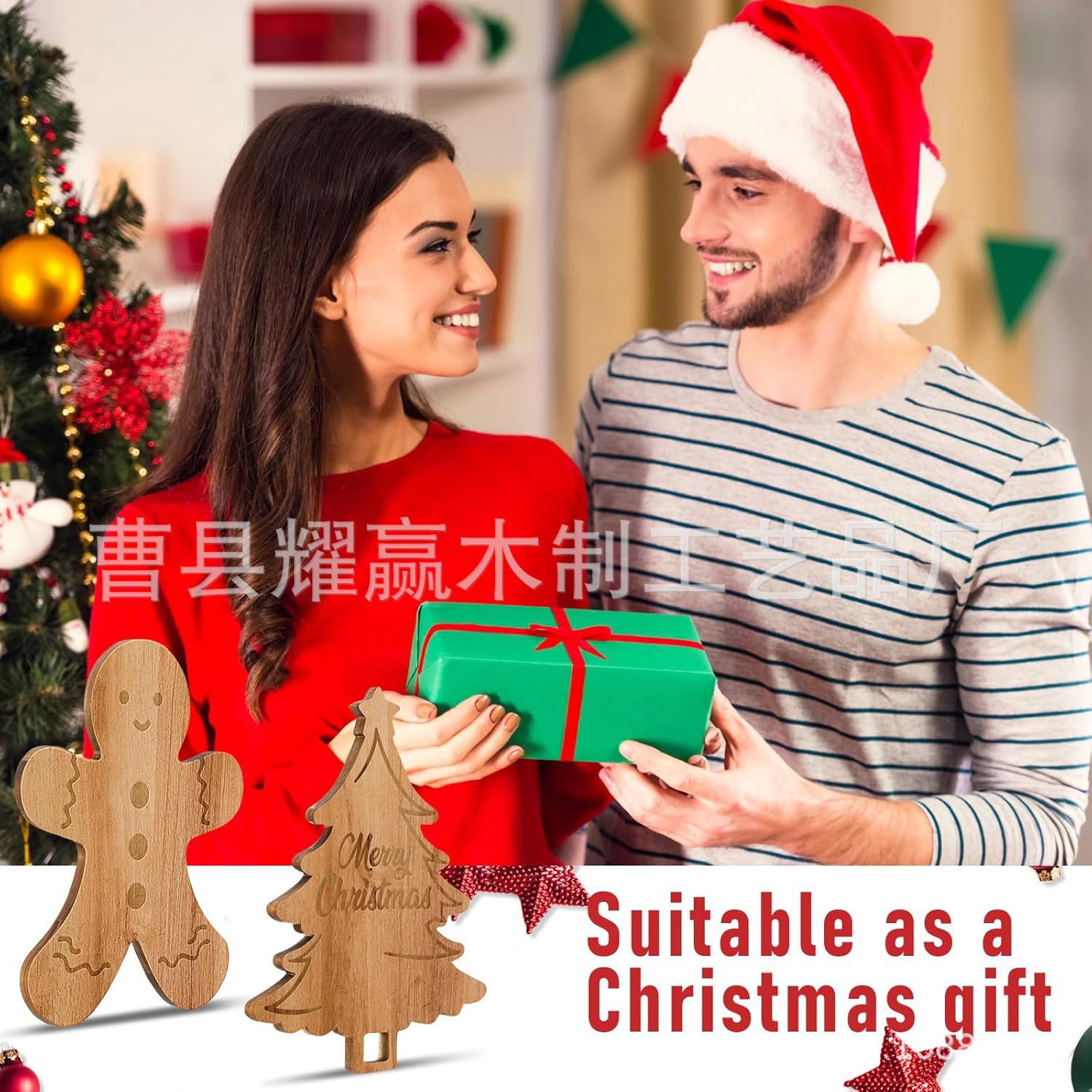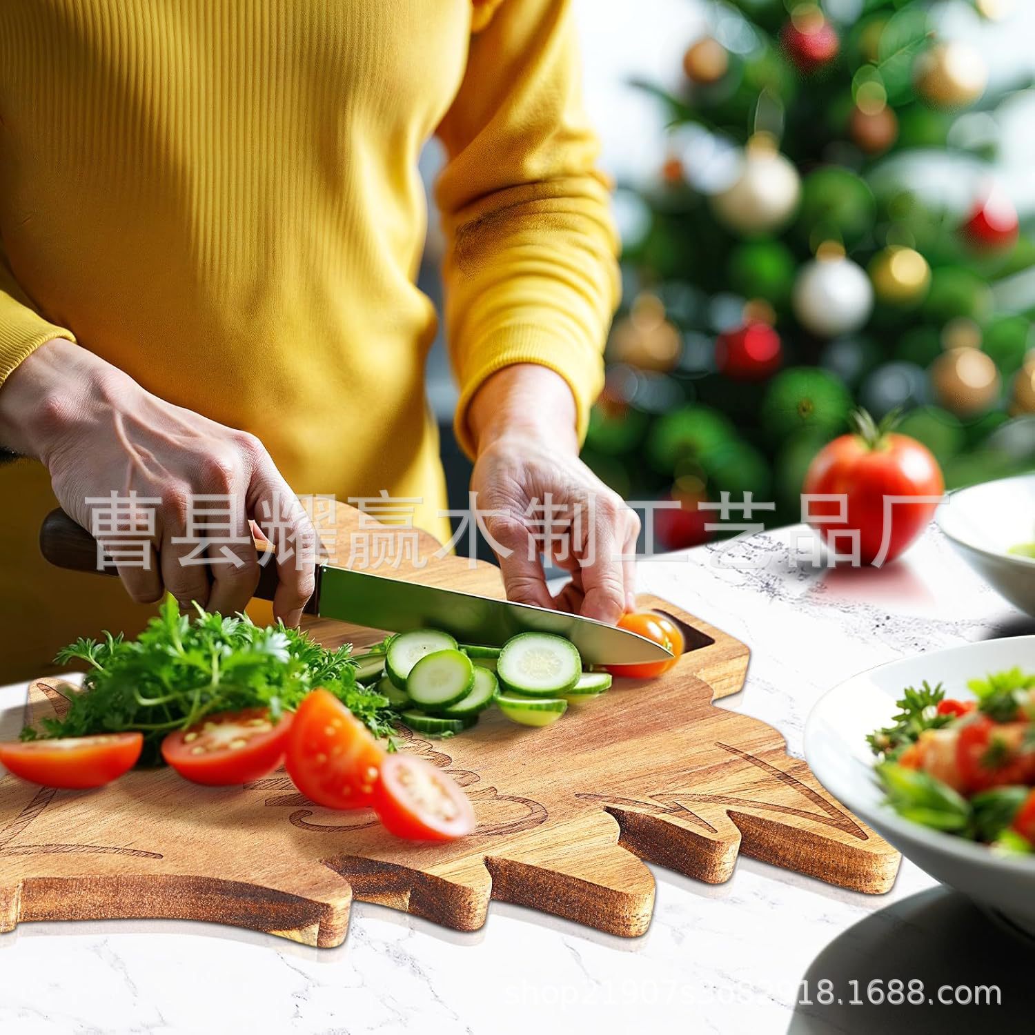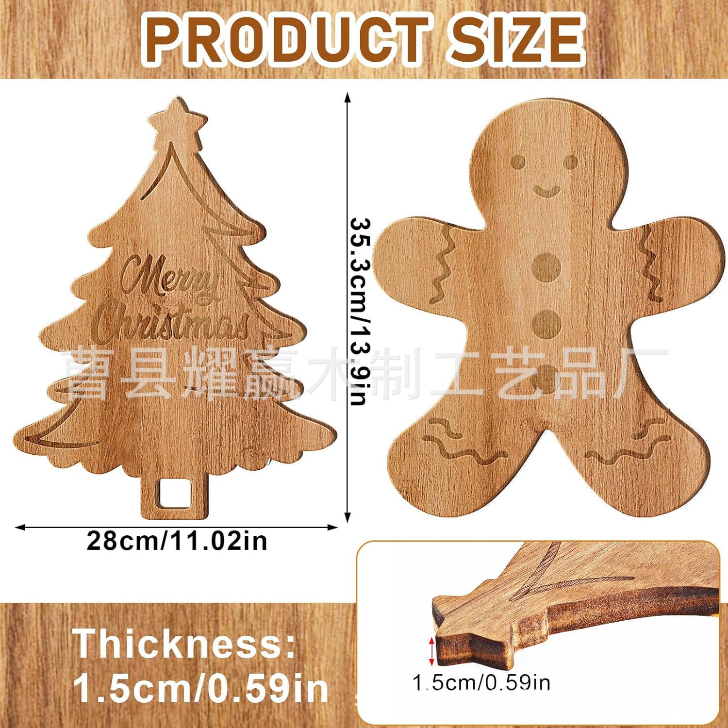 创意木制托盘圣诞节餐盘创意姜饼人圣诞树托盘实木儿童辅食板批发