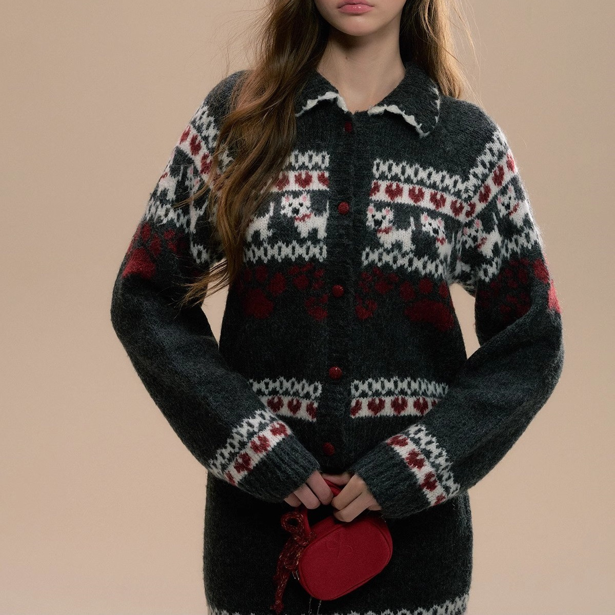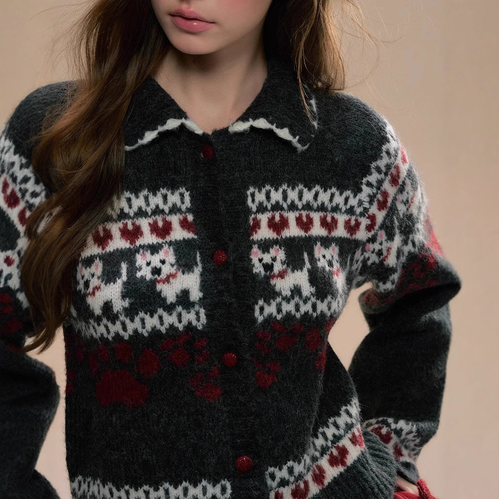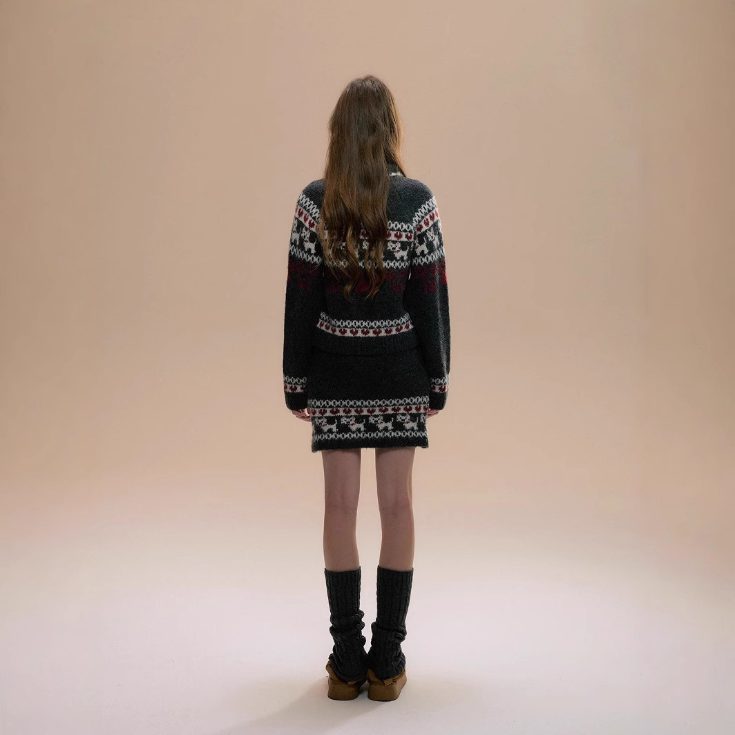 日落公园 "小狗费尔岛"深灰色复古针织毛衣外套半裙冬