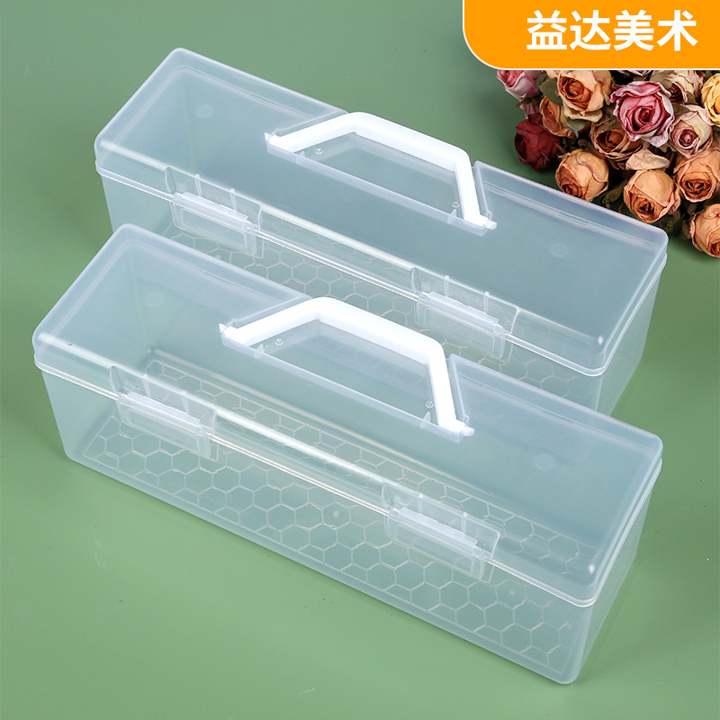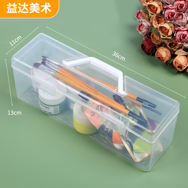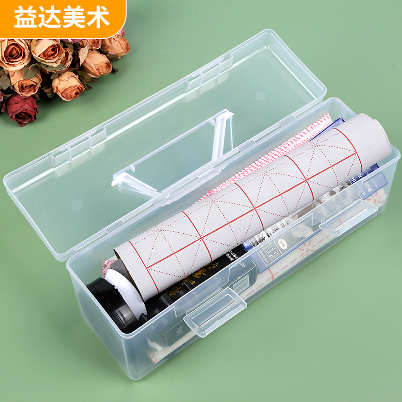 画笔收纳盒透明书法工具盒加长学生便携式毛笔画笔颜料透明手提盒
