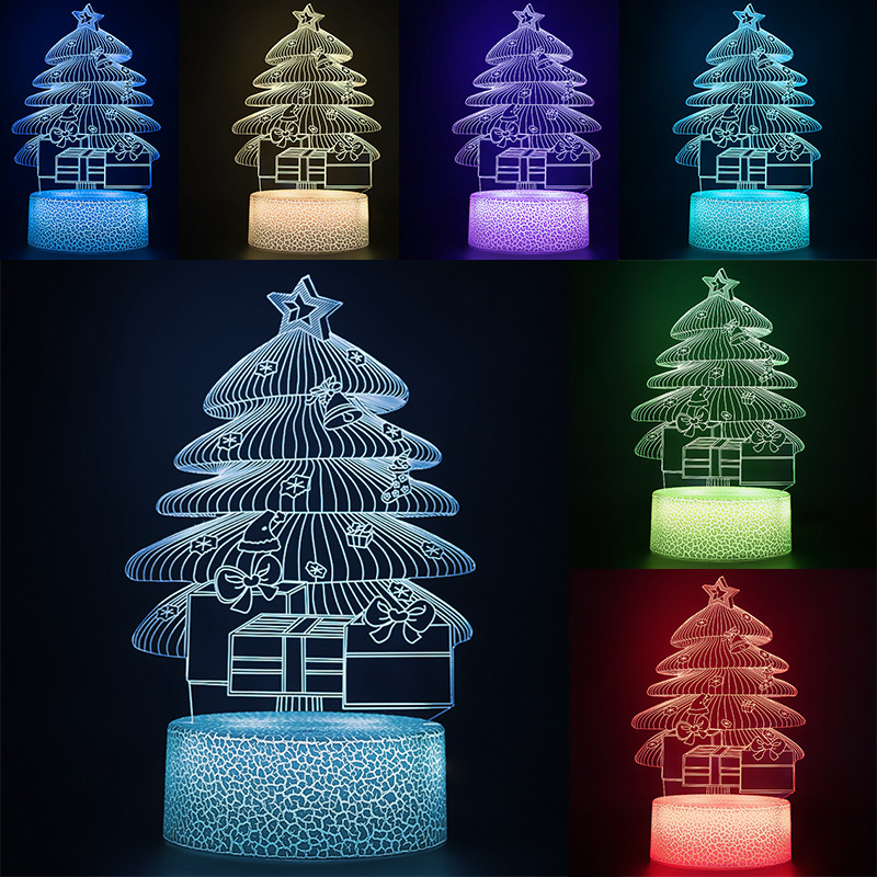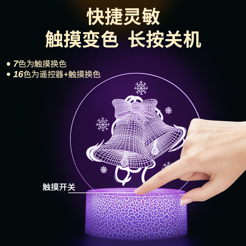 跨境创意圣诞节礼品网红七彩遥控触摸3d亚克力小夜灯儿童卧室摆件