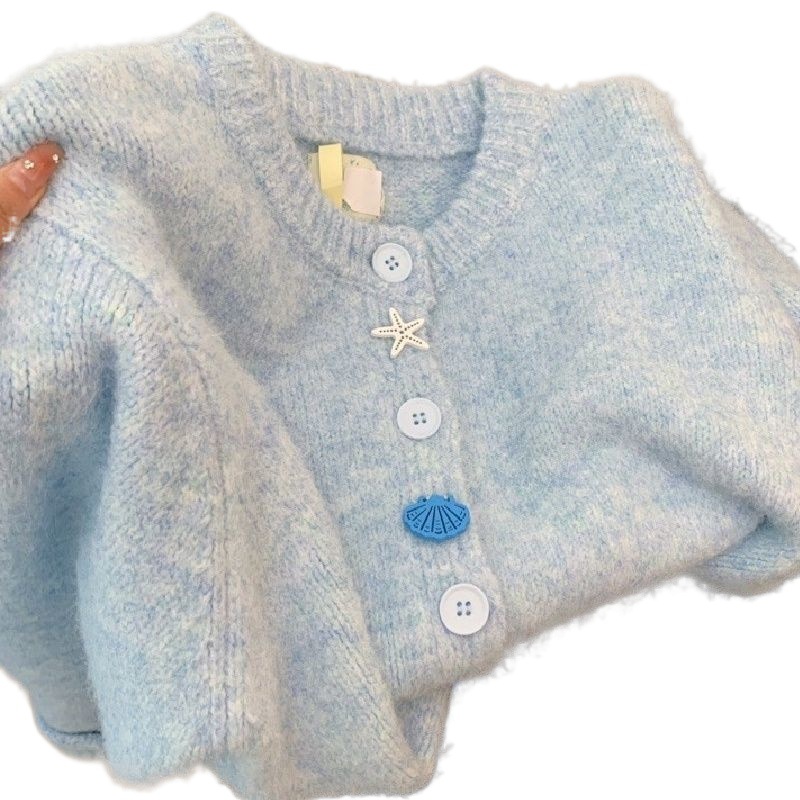 绒莱 奶蓝色温柔风软糯高级感针织开衫春秋季女奶慵懒减龄毛衣女