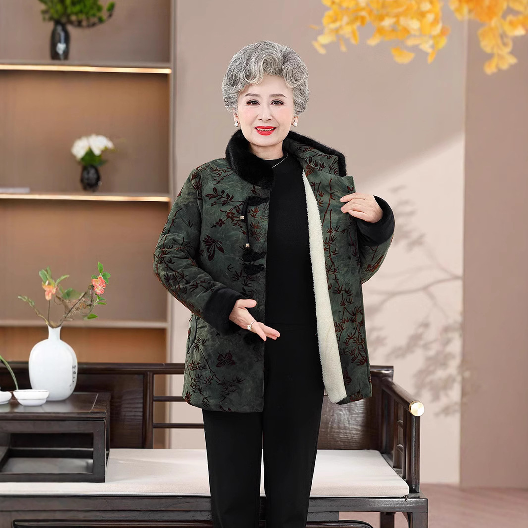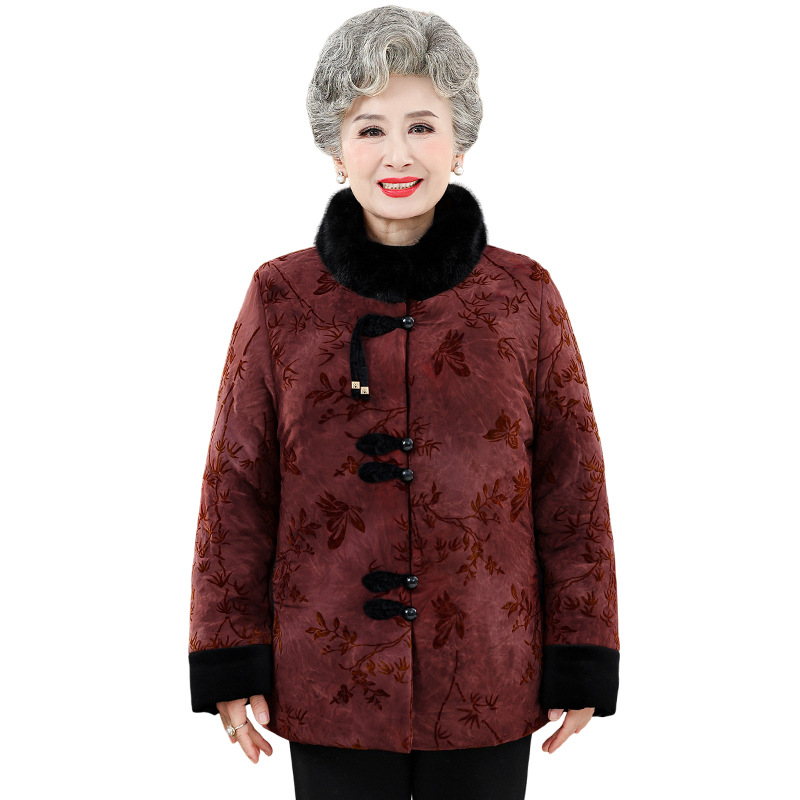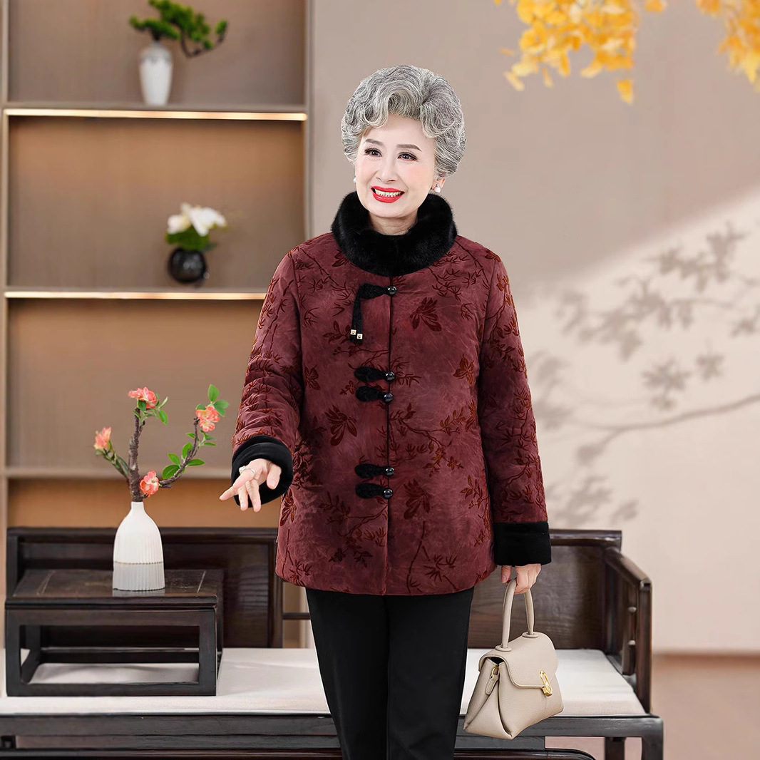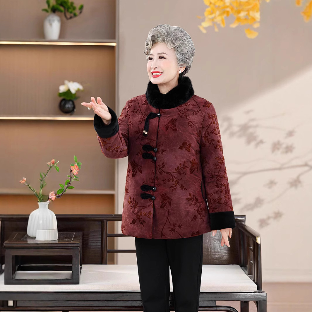 绒莱 加绒棉服 中老年奶奶装秋冬保暖棉服女中喜庆柔软亲肤妈妈装