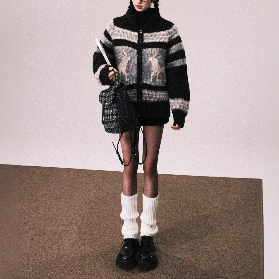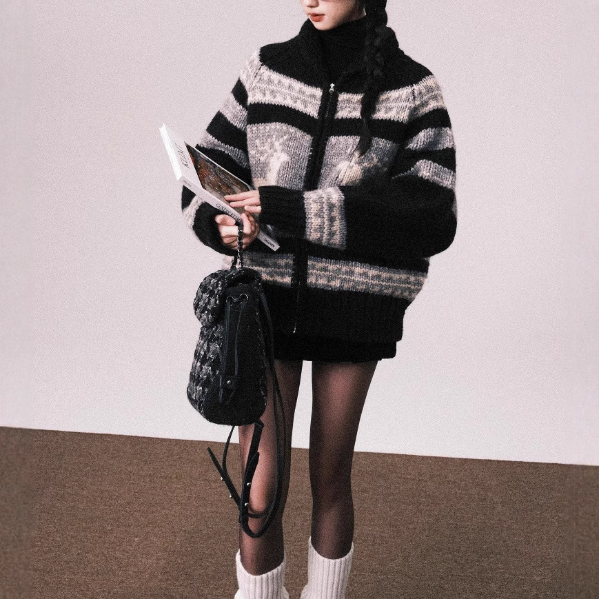24AW 重磅羊毛费尔岛毛衣外套女秋冬北欧复古慵懒开衫