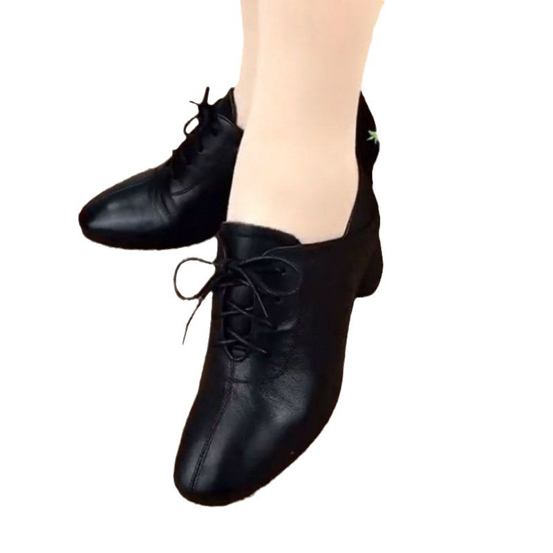 跨境外贸单鞋女2025年春秋新款粗跟中低跟女鞋方头系带黑色皮鞋子