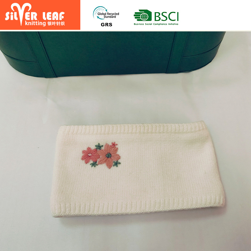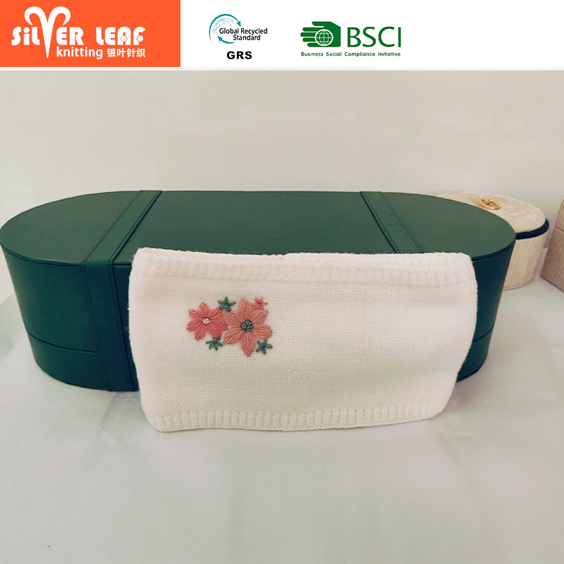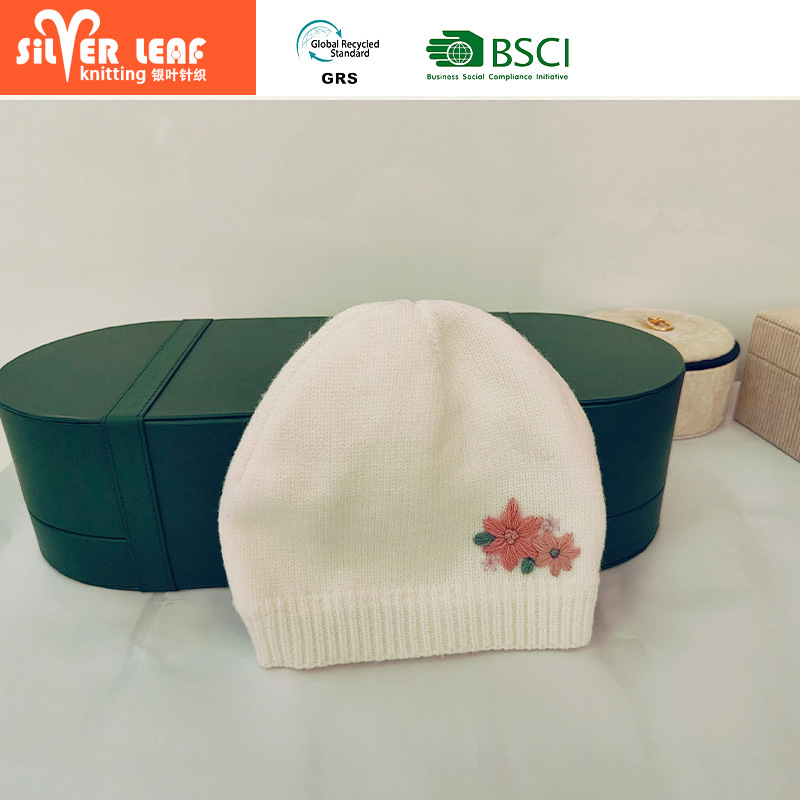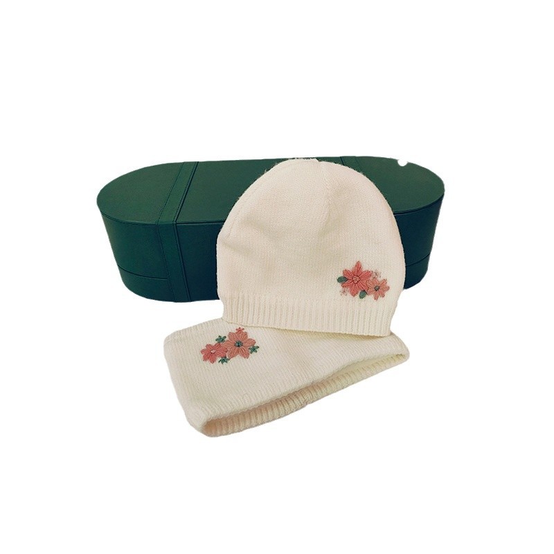 厂家定制生产简约清新针织帽子围巾米白小红花新款针织围巾帽子