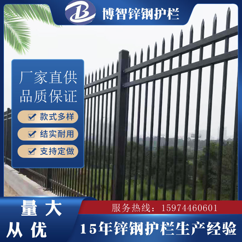 源头厂家锌钢护栏材料批发厂区热镀锌隔离防护栏学校别墅镀锌围栏