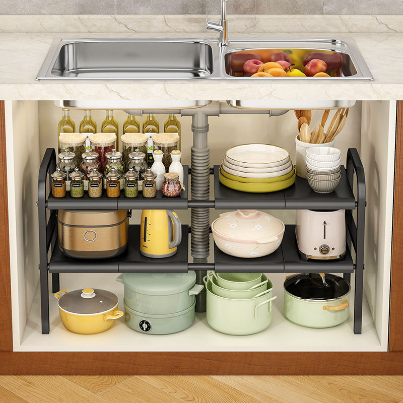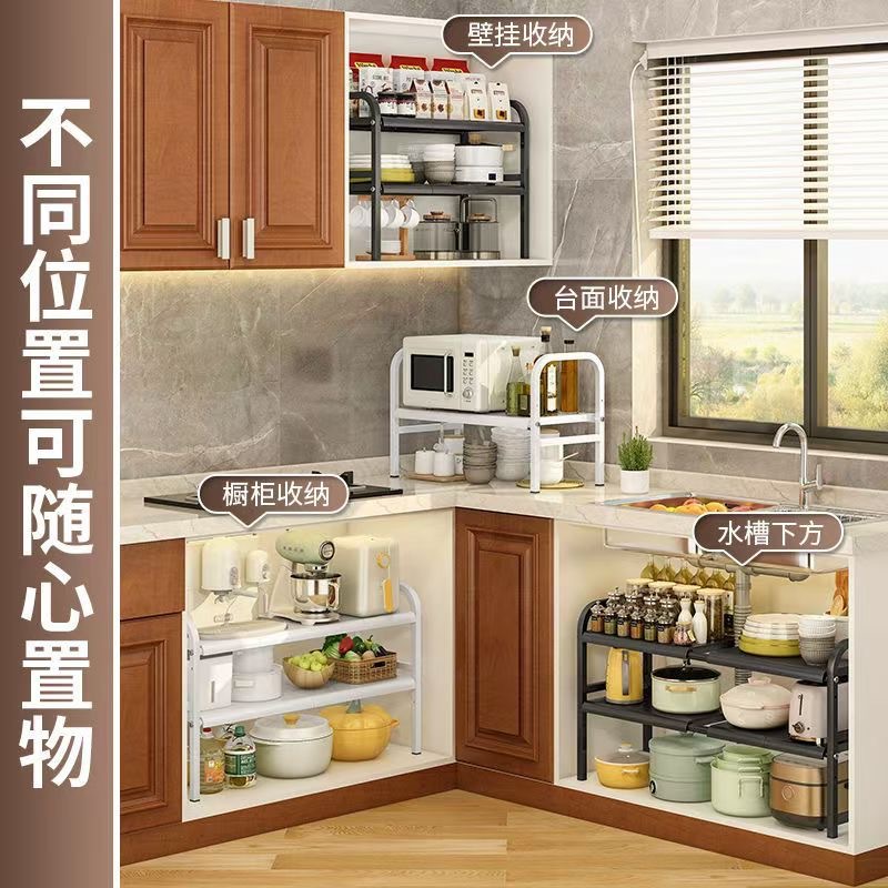 厨房洗菜盆下置物架台面碗筷调料整理架橱柜分层锅具杂物收纳架