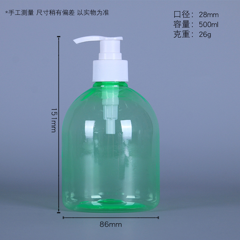 洗手液瓶圆形透明洗手液瓶多色可选500ml沐浴露瓶乳液塑料瓶