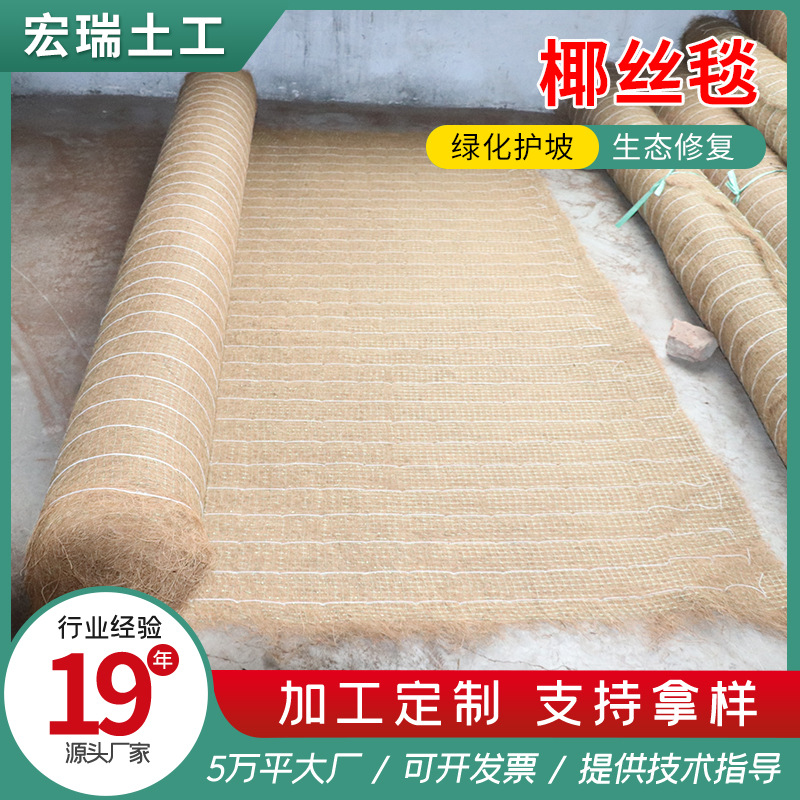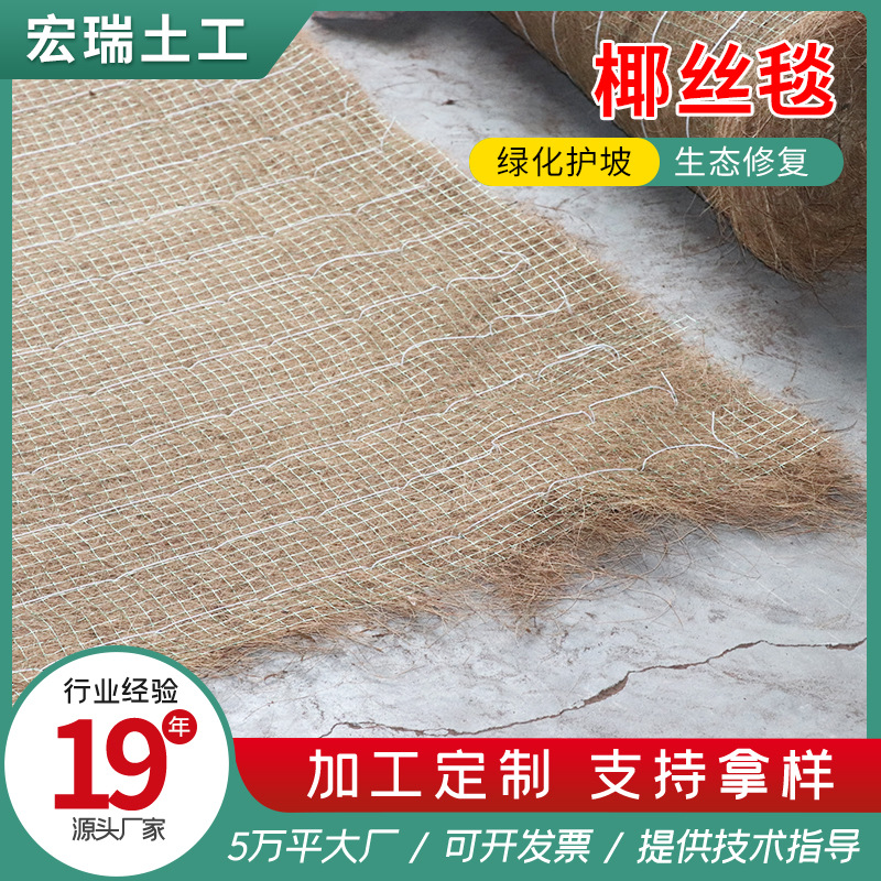 椰丝毯荒山修复河道绿化护坡固化加筋抗冲草籽植物纤维植被椰丝毯