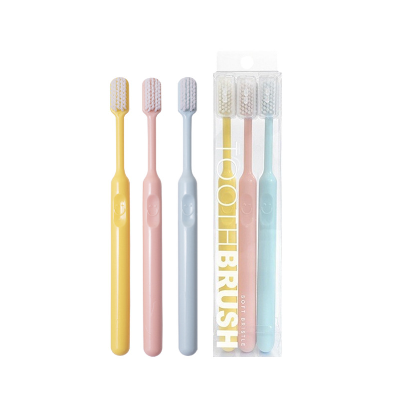 成人简约软毛牙刷3支独立包装家用旅行便携清洁护龈圆弧牙刷批发