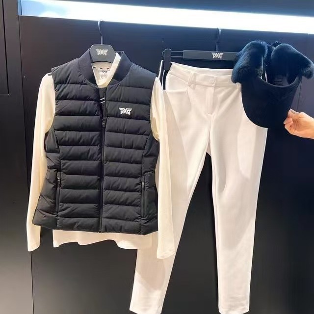 韩国高尔夫新款秋冬女士羽绒马甲轻盈保暖版型收身显瘦黑色白色