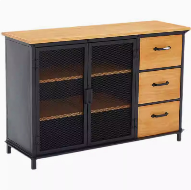 美式复古餐边柜铁艺做旧储物收纳置物架客厅茶水酒橱柜子家用餐厅