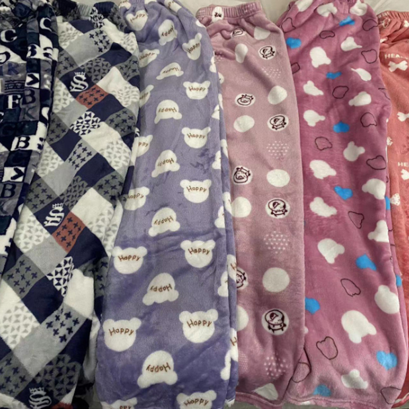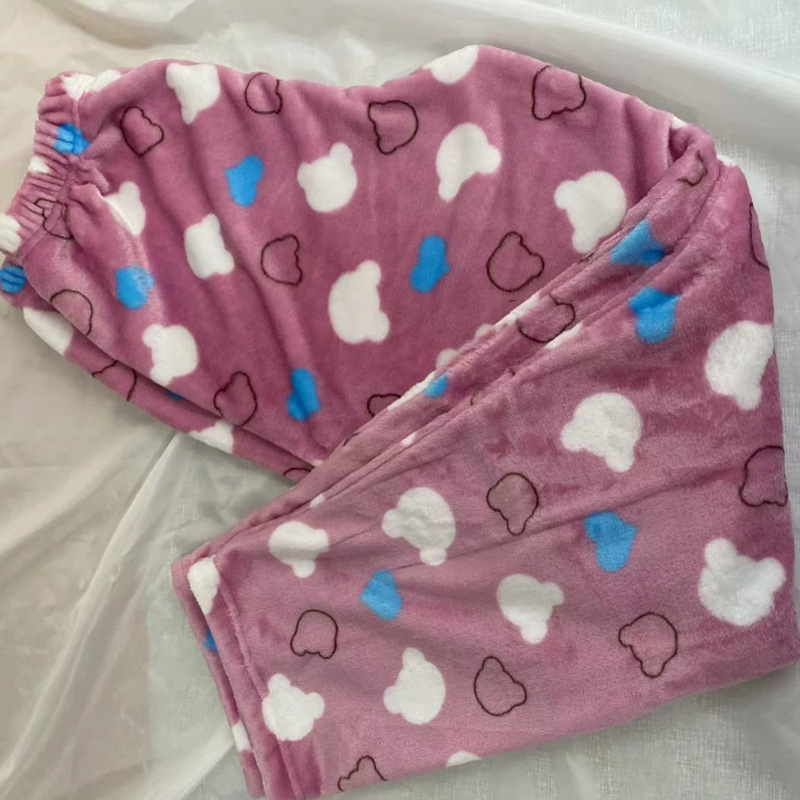 珊瑚绒睡裤女长裤宽松可外穿法兰绒暖秋冬保暖加绒家居休闲