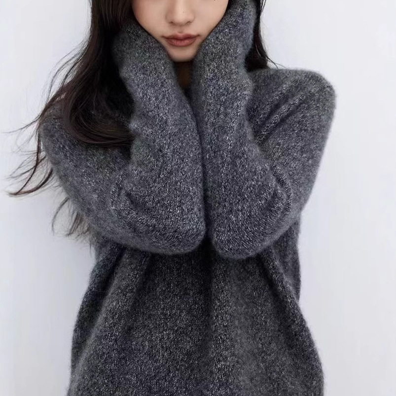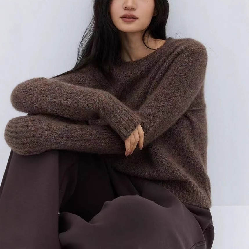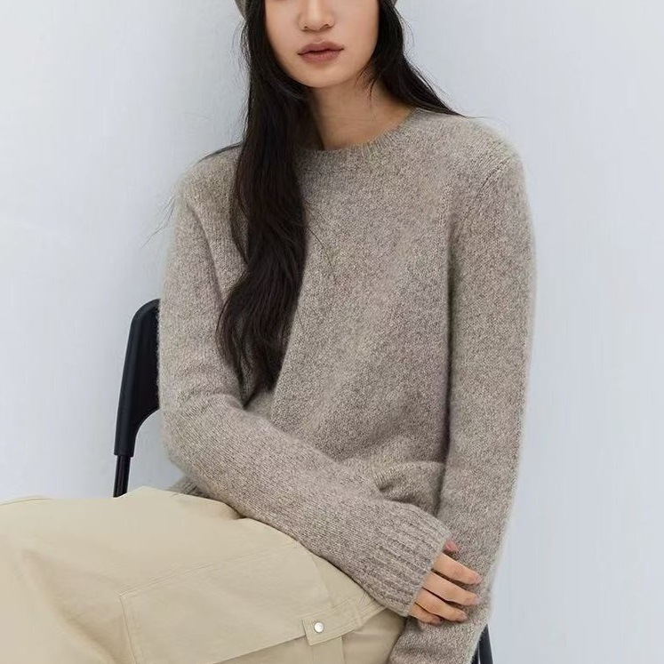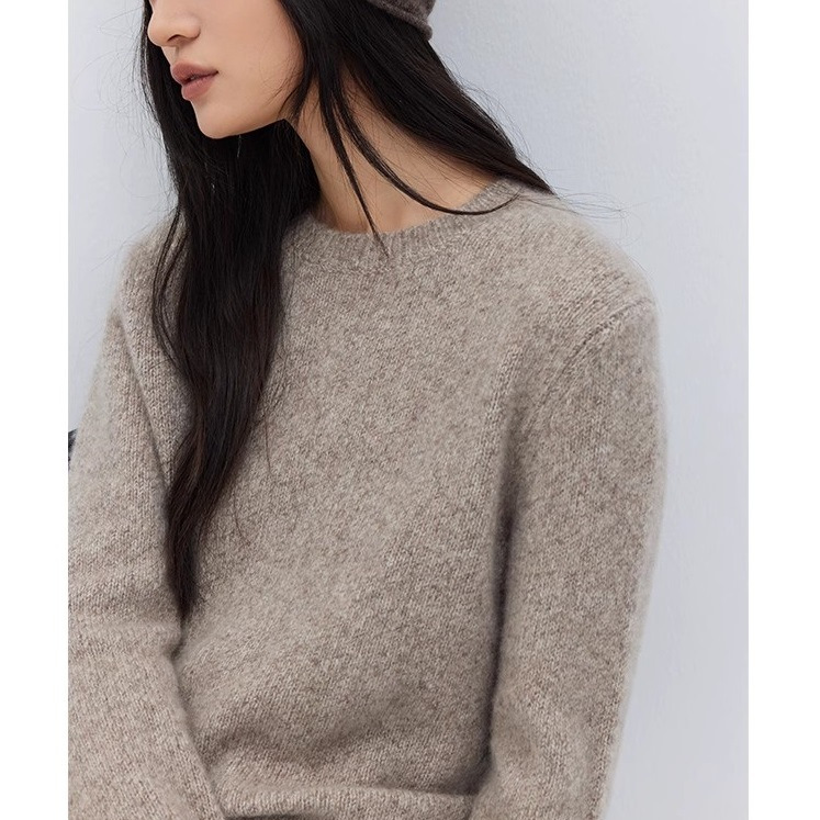 3股加厚康宝莱amara丝羊绒混色ab纱極简圆领针织衫女