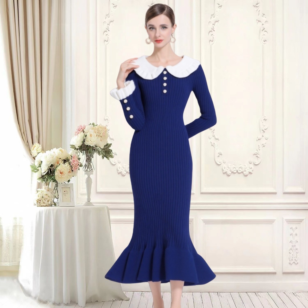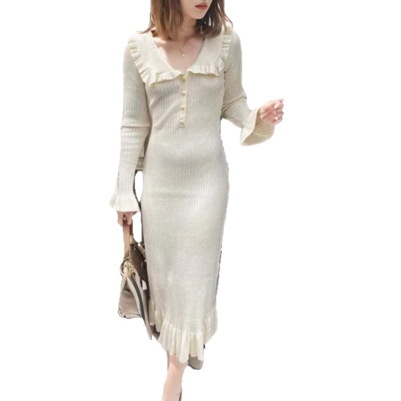| 适用场景 | 城市通勤 | 2 | 广州十三行秋冬季跨境欧美长袖针织跨境欧美秋季新款蝴蝶结绑带荷叶边针织裙珍珠扣长袖小香风连衣裙 |