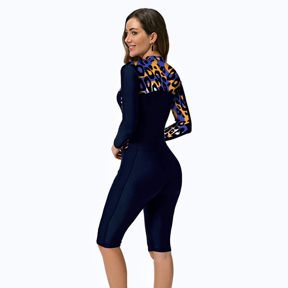 2025新款运动泳衣连体长袖防嗮竞技高弹面料拉链印花跨境紧身泳装