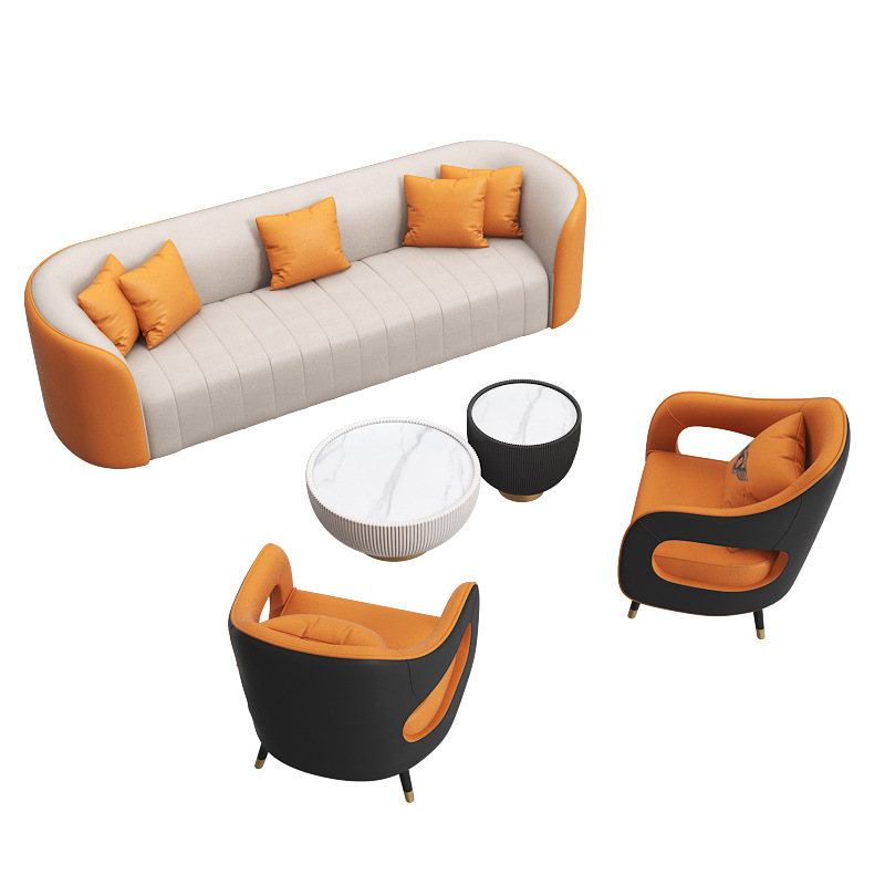 | 颜色 | 三人位大沙发(橘色拼米色) | 颜色 | 三人位大沙发(灰色拼米色) |