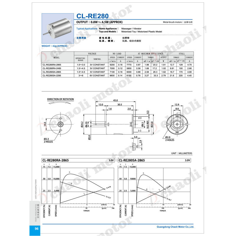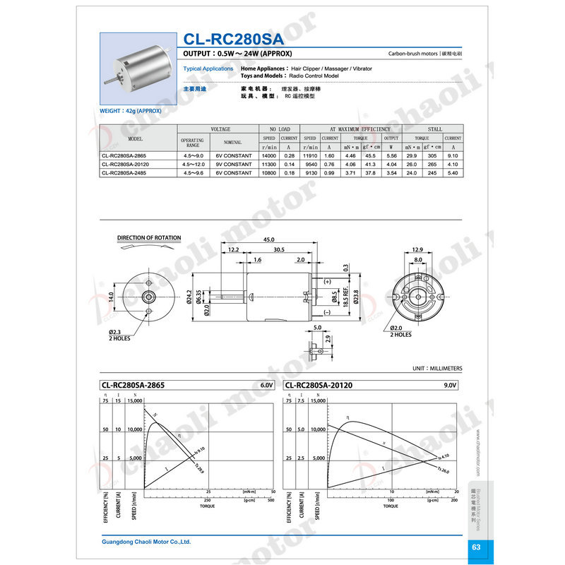 CL-RC280电机电动玩具按摩器微型小马达美容仪剃须刀直流微型电机