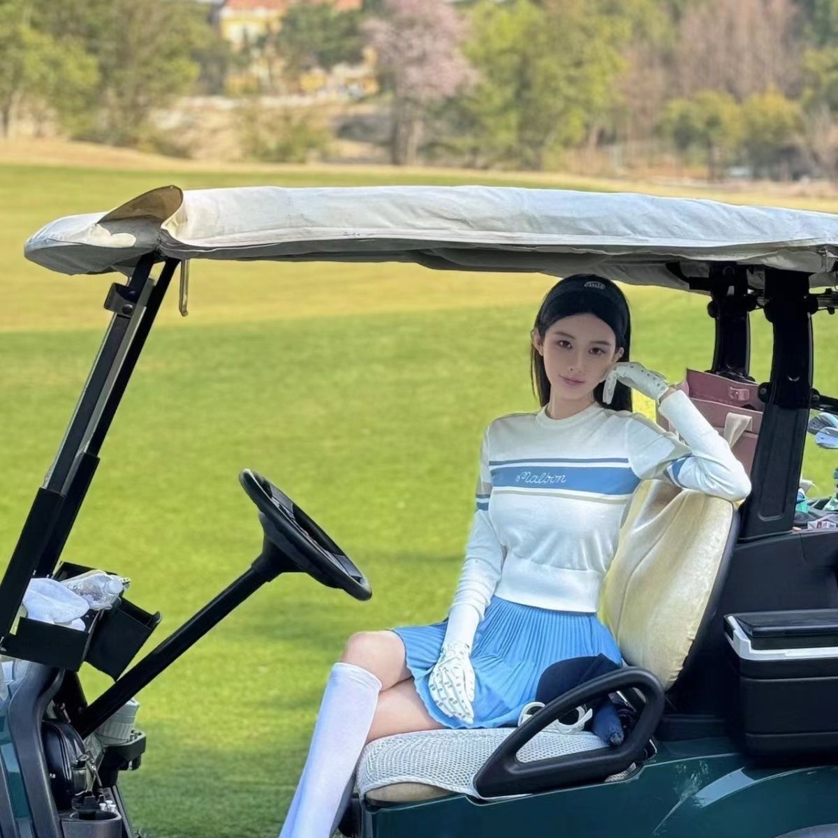 高尔夫服装上衣2024春秋季女装圆领配色运动长袖针织衫高弹时尚