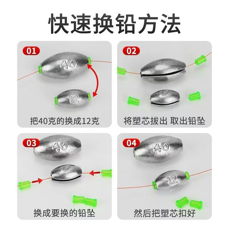 日式开口铅垂钓用品快速铅钓鱼橄榄铅坠渔具配件筏钓矶杆铅坠批发
