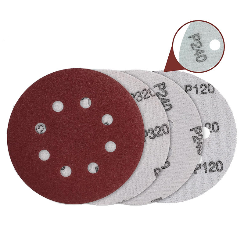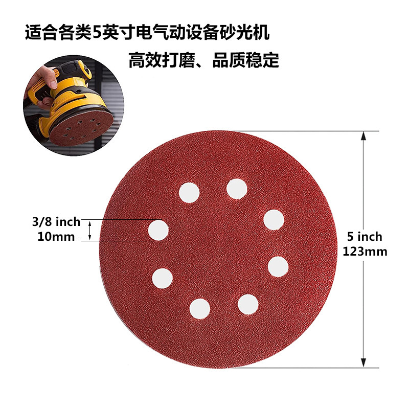 5寸8孔植绒砂纸 红砂背绒植绒气磨砂纸片 抛光打磨圆盘砂纸批发
