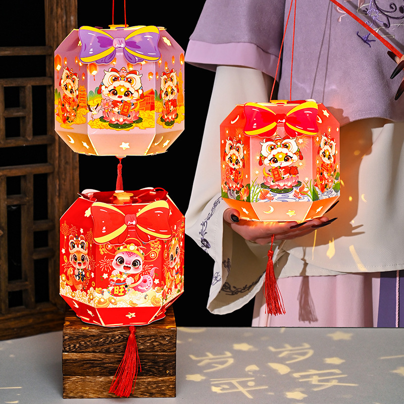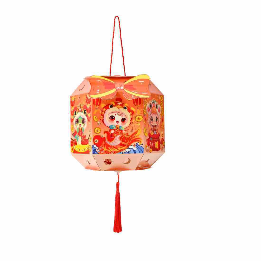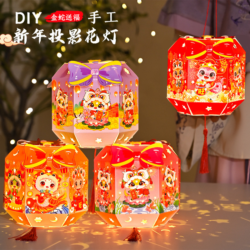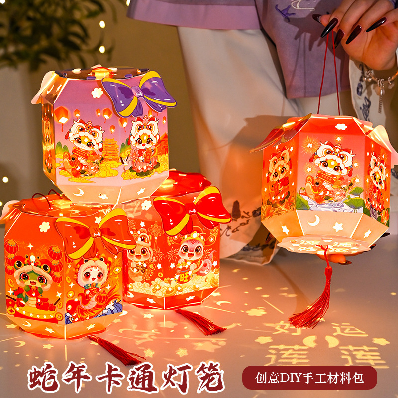 2025蛇年国潮六面投影花灯手提灯笼手工diy材料包儿童古风小灯笼