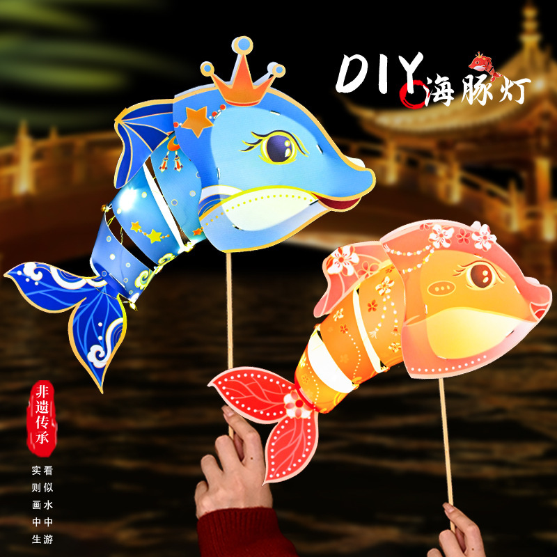 2025新款海豚灯手工灯笼儿童创意手工diy材料包元宵花灯