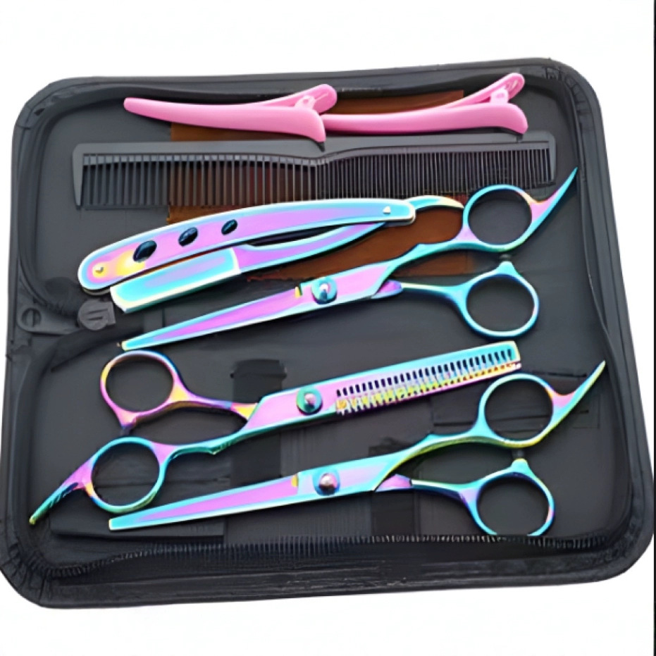 工厂自营专业理发剪刀美发剪刀套装黑金黑蓝七彩理发美发剪刀套装