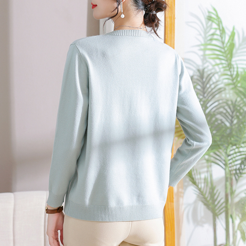 衫春秋上衣服中老年人女V领长袖t恤女妈妈秋装洋气减龄针织打底小