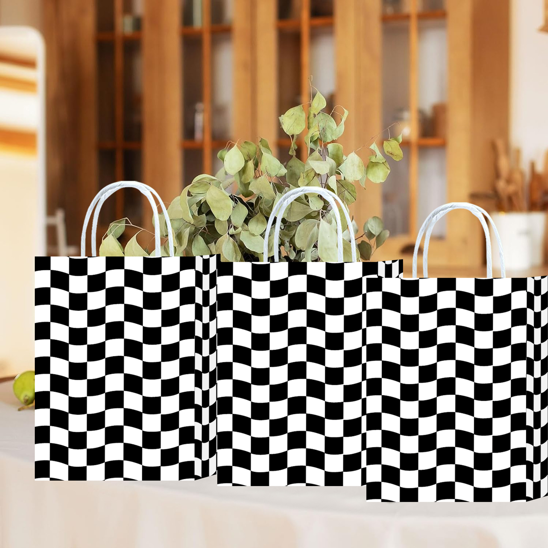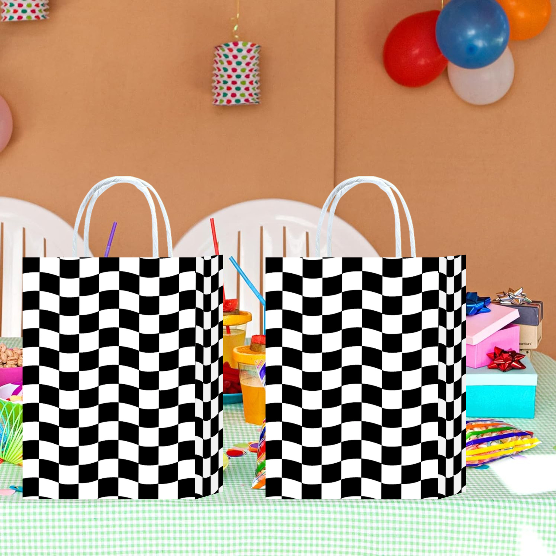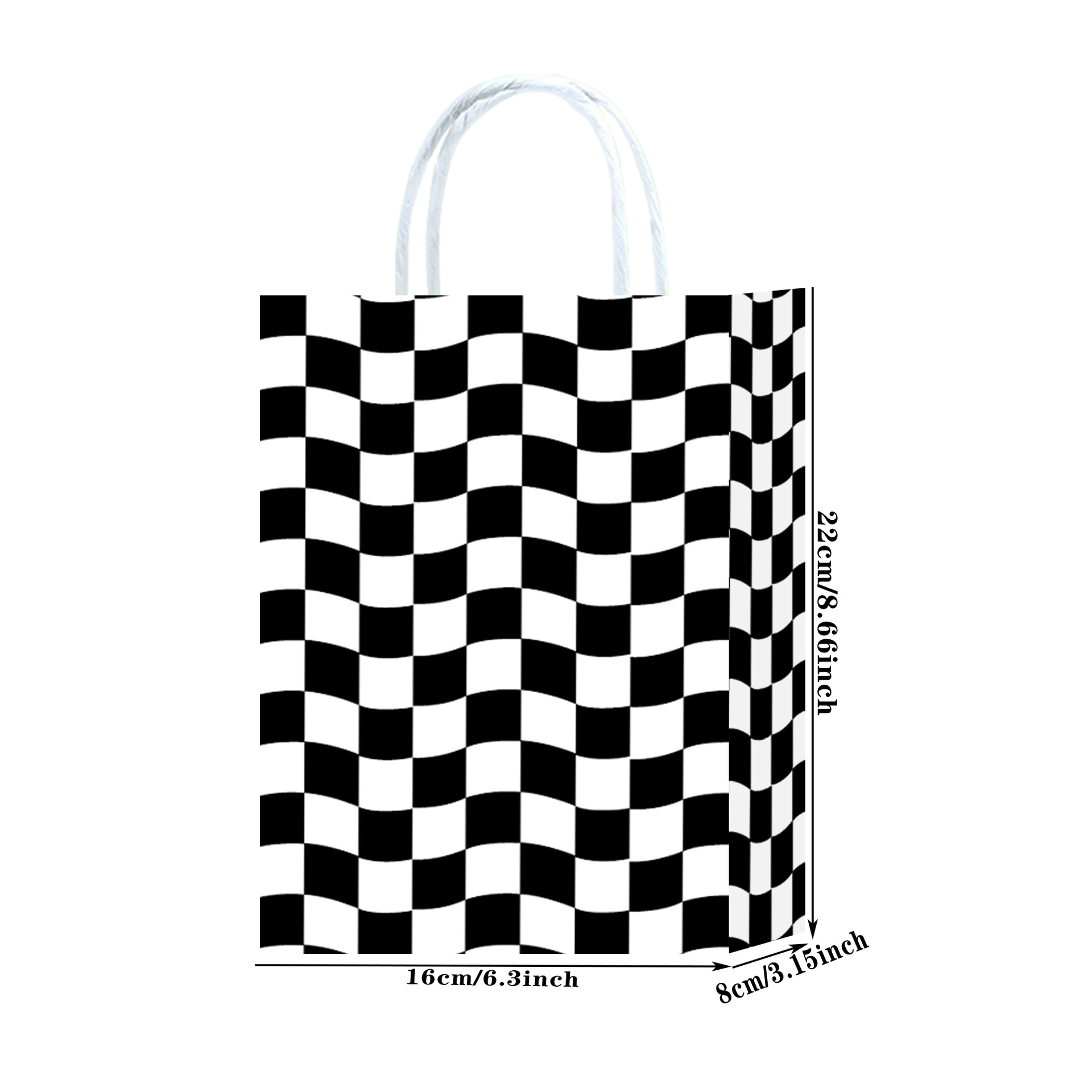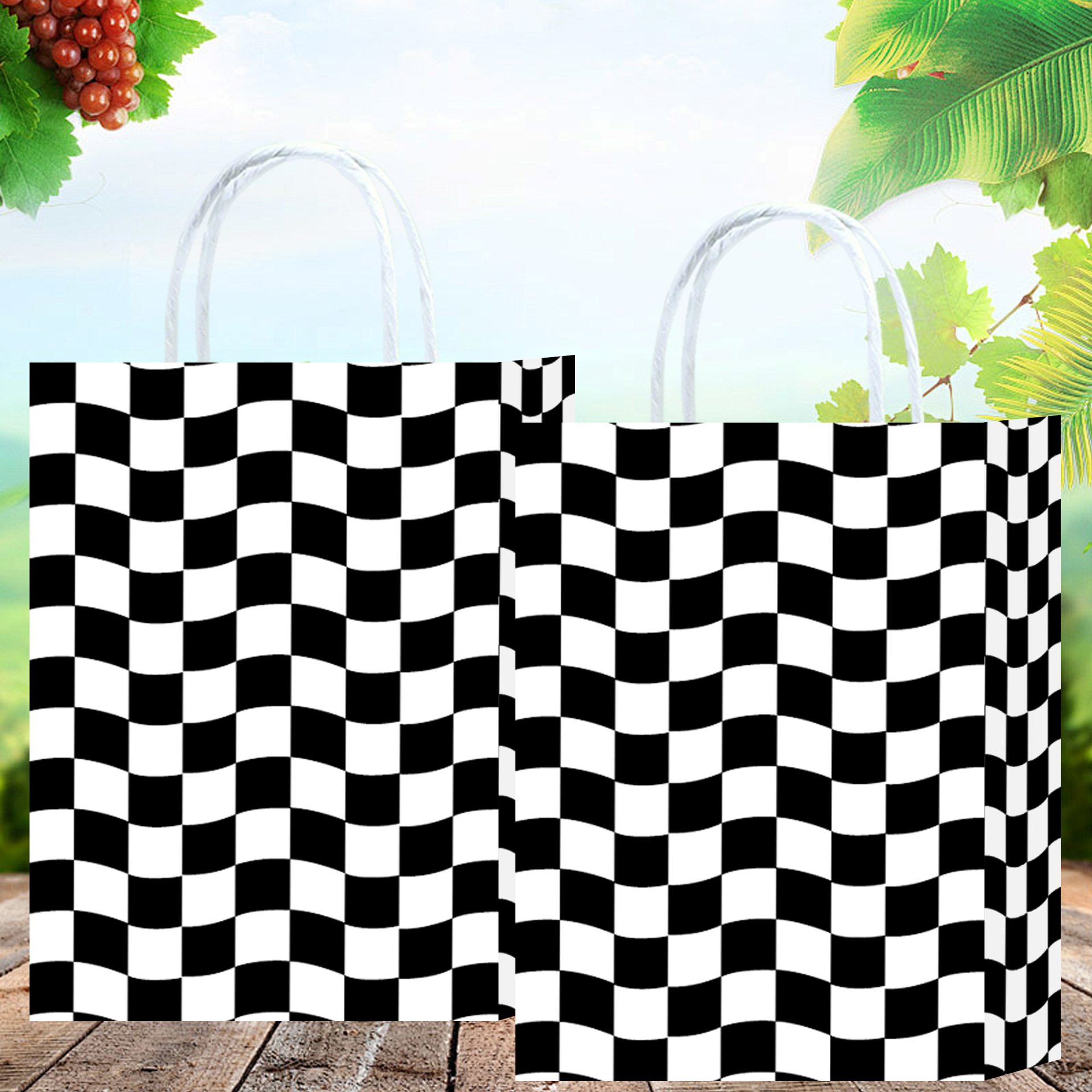 波浪斜纹黑白格子主体元素牛皮纸袋派对图案礼品袋可爱风购物纸袋