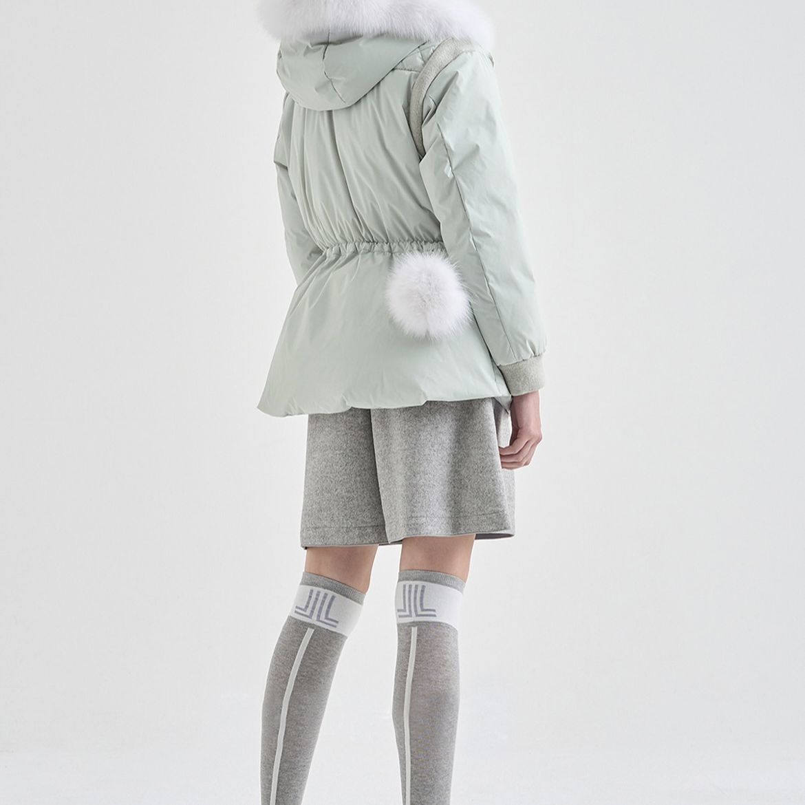 新款原单高尔夫服装女士秋冬连帽毛领收腰鹅绒保暖防风羽绒外套