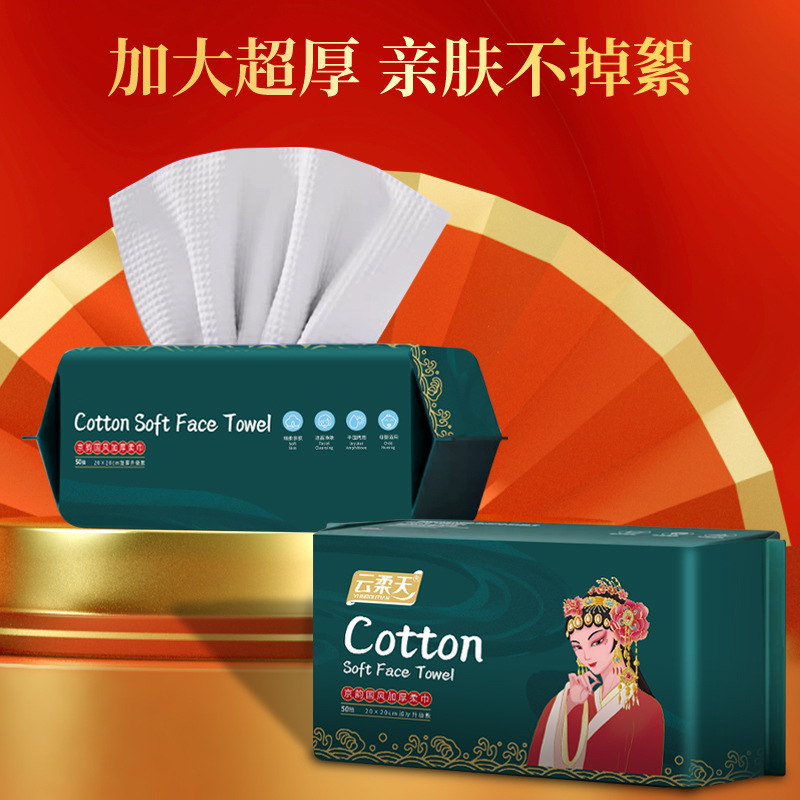国潮一次性加厚棉柔洗脸巾抽取式干湿两用洁面巾
