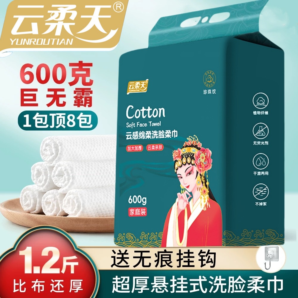 云柔天洗脸巾600g家庭装擦脸巾悬挂抽取式加大加厚一次性棉柔巾