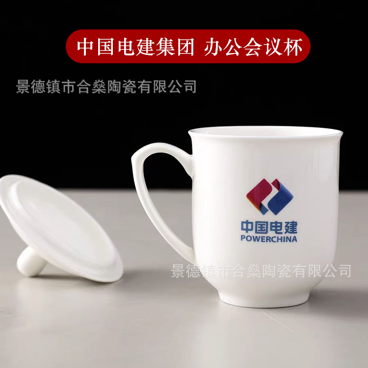 景德镇陶瓷茶杯定制加公司logo优质骨瓷纯白中华杯中国电建集团