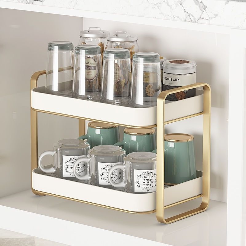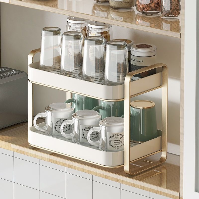 家用杯子收纳置物架桌面水杯双层托盘架子多功能厨房沥水架批发
