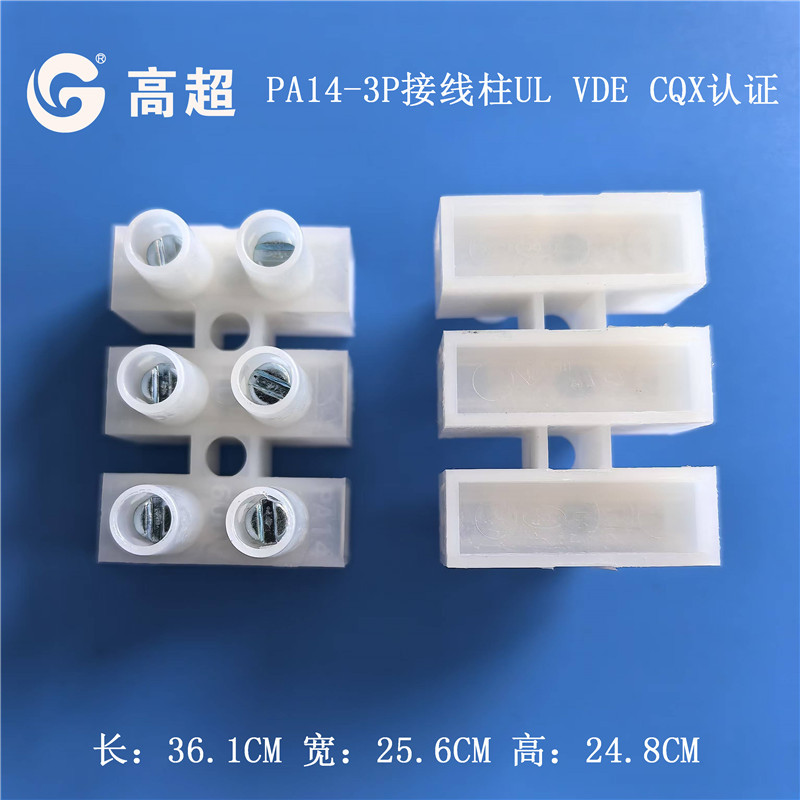 PA14-3P接线端子10平方接线柱UL认证VDE端子台阻燃三位端子