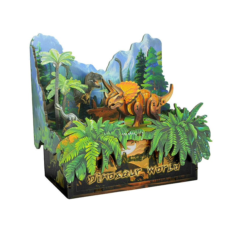 恐龙世界动态音乐盒木质动物拼益智儿童礼物手工拼装模型跨境