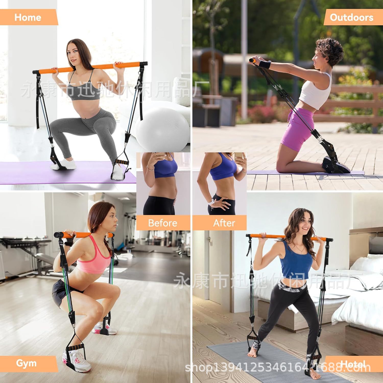 跨境普拉提棒瑜伽多功能健身拉力器用品阻力深蹲拉背阻力弹力带