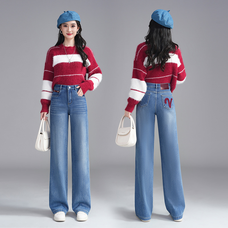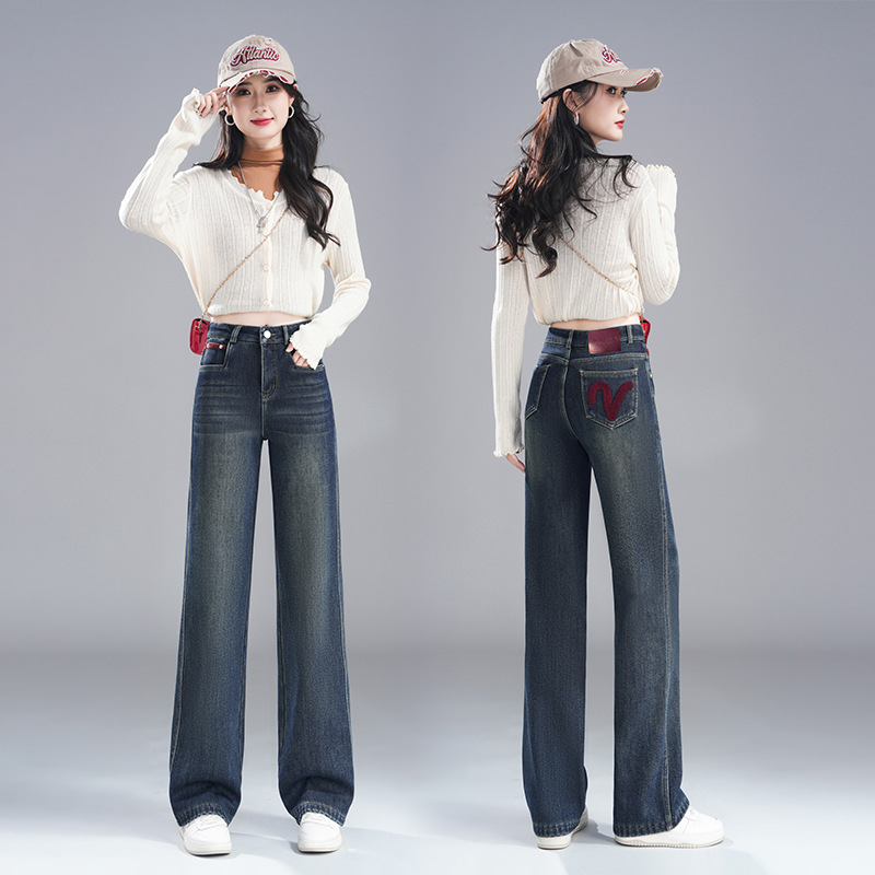 牛仔阔腿女裤秋冬新款高腰提臀显瘦休闲宽松时尚窄版阔腿裤秋冬款